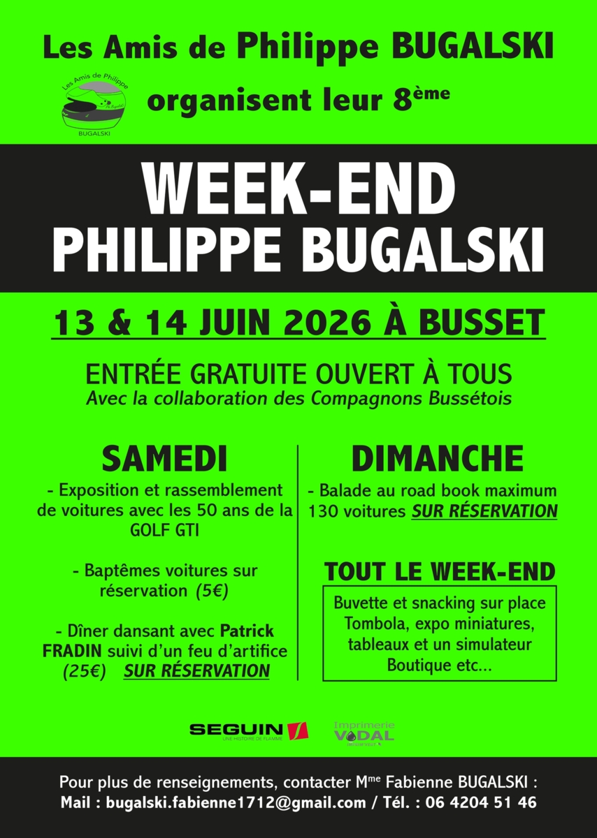 Pour vous inscrire rendez-vous sur : https://www.payasso.fr/lesamisdephilippebugalski/inscription-exposition-et-rassemblement